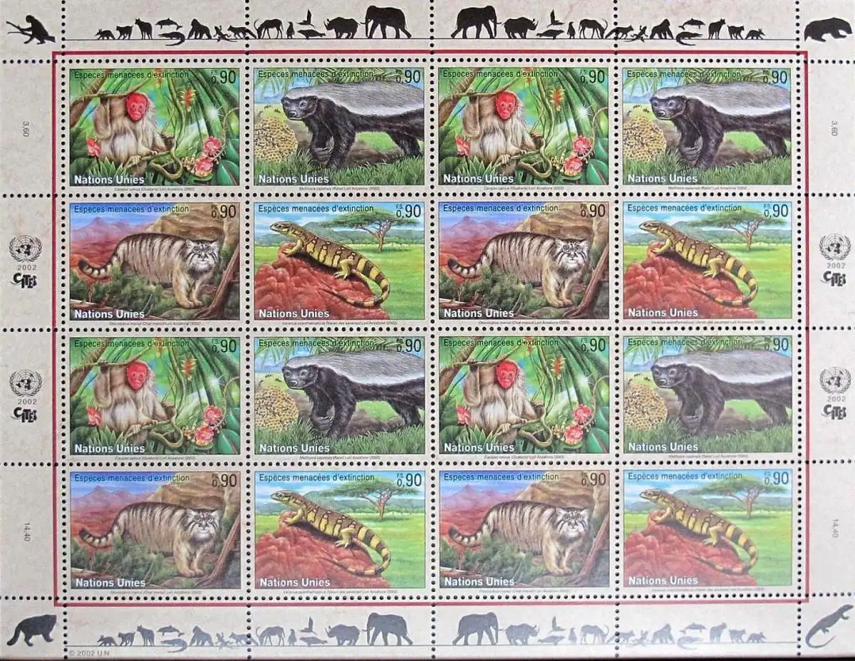 UNO GENF 2002 Mi-Nr. 434/37 Kleinbogen gefährdete Arten ** MNH