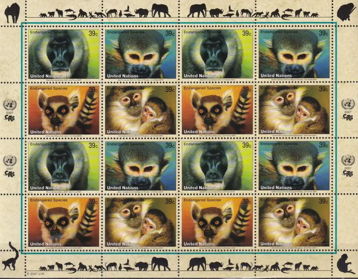 UNO GENF 2007 Mi-Nr. 561/64 Kleinbogen gefährdete Arten ** MNH
