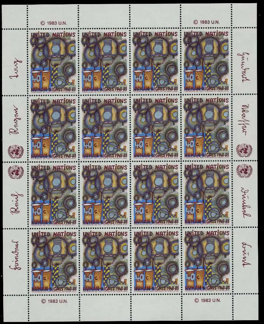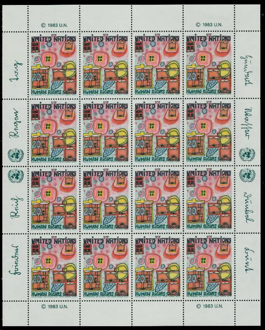 35. Jahrestag der allgemeinen Erklärung der Menschenrechte / Friedensreich Hundertwasser, / 2 Kleinbogen
