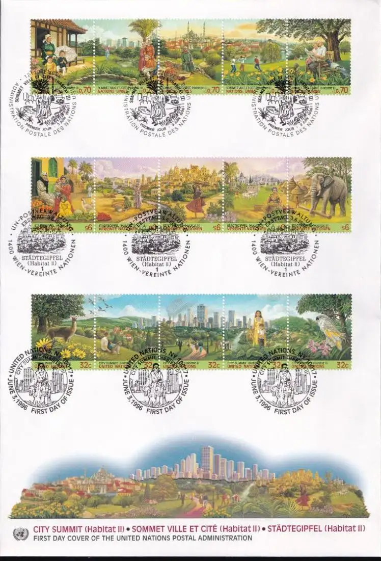 UNO NEW YORK - WIEN - GENF 1996 TRIO-FDC Städtegipfel