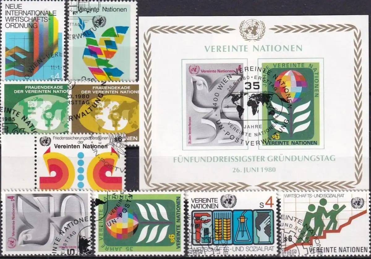 UNO WIEN 1980 Mi-Nr. 7-15 kompletter Jahrgang/complete year set o used - aus Abo