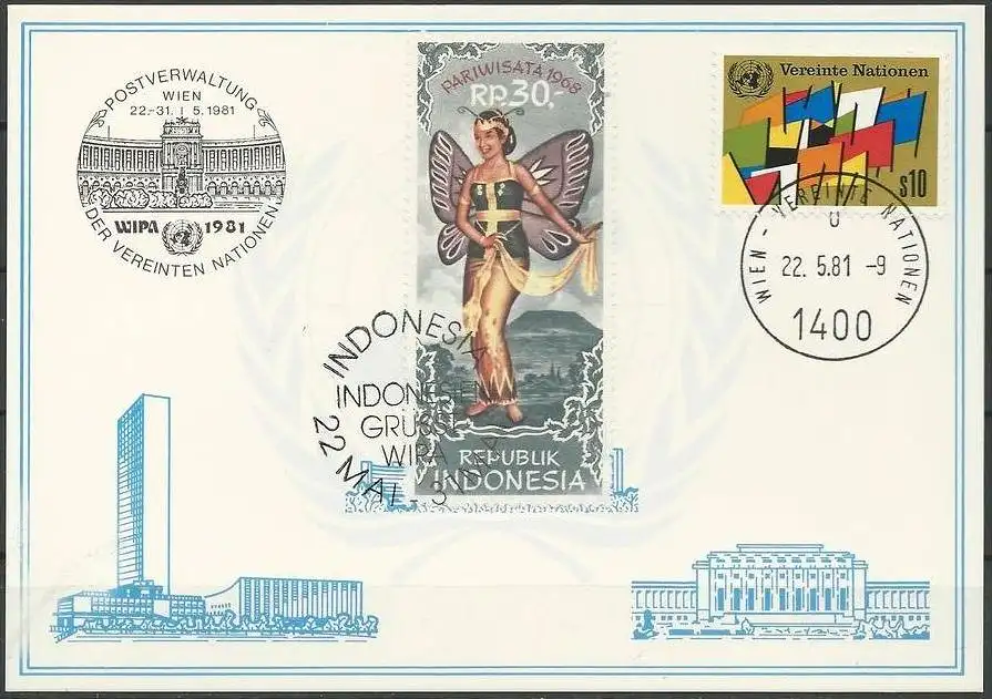 UNO WIEN 1981 Mi-Nr. 13 WEISSE KARTE - WIEN MISCHFRANKATUR 22.05.1981