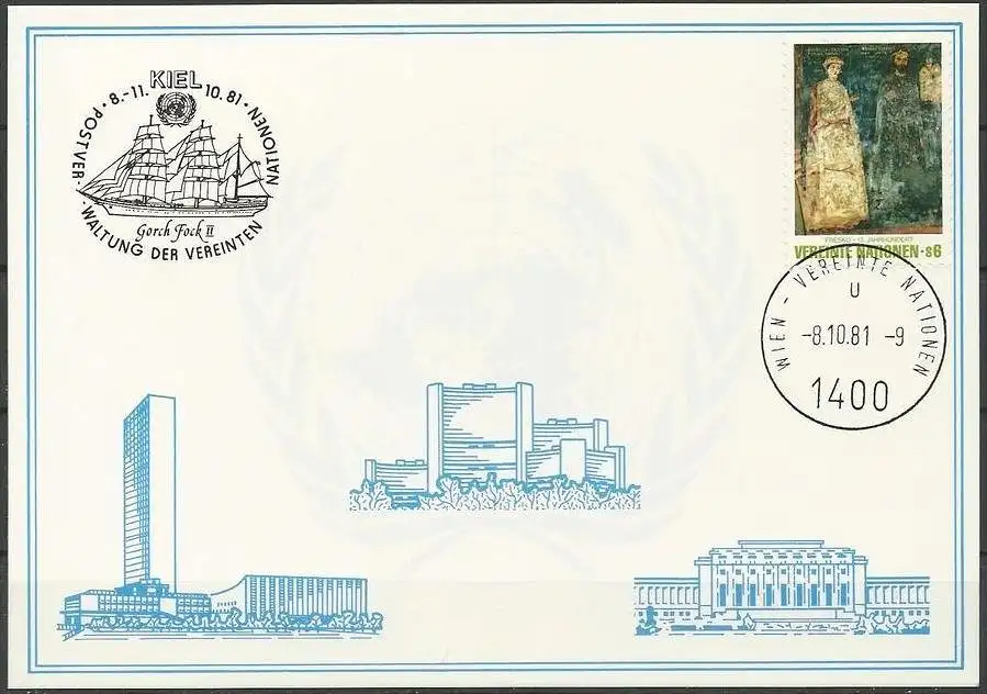 UNO WIEN 1981 Mi-Nr. 14 WEISSE KARTE - KIEL 08.10.1981
