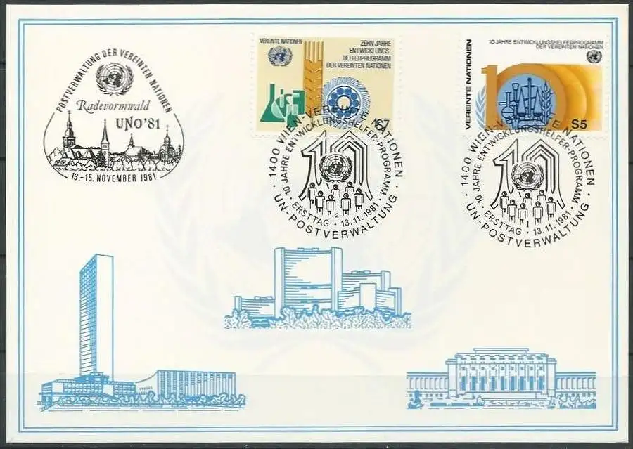 UNO WIEN 1981 Mi-Nr. 16 WEISSE KARTE - RADEVORMWALD MISCHFRANKATUR 13.11.1981