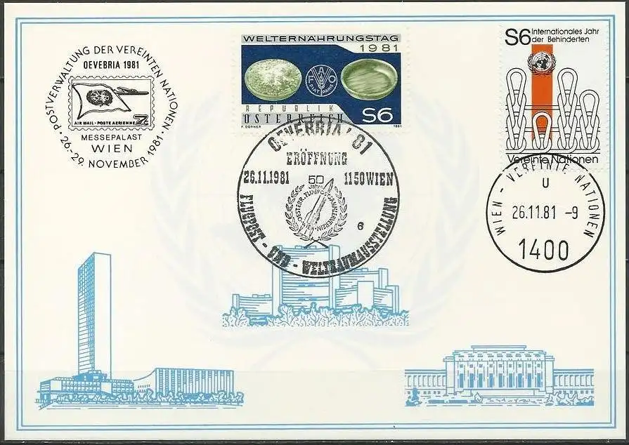 UNO WIEN 1981 Mi-Nr. 17 WEISSE KARTE - WIEN MISCHFRANKATUR 26.11.1981