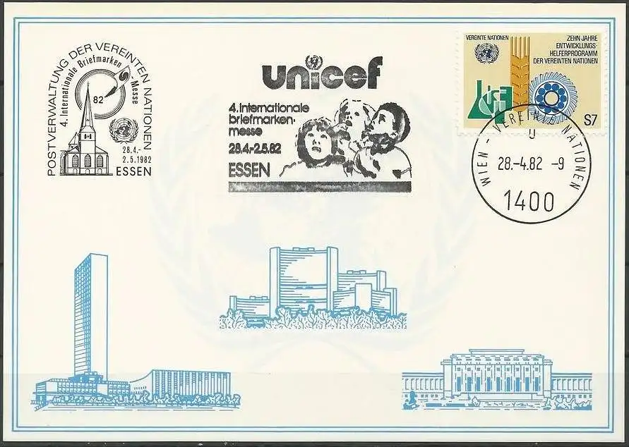 UNO WIEN 1982 Mi-Nr. 18 WEISSE KARTE - ESSEN 28.04.1982
