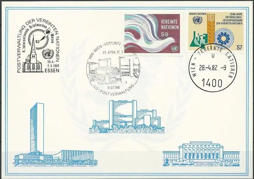 UNO WIEN 1982 Mi-Nr. 18 WEISSE KARTE - ESSEN MISCHFRANKATUR 28.04.1982