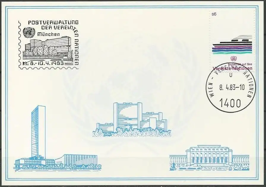 UNO WIEN 1983 Mi-Nr. 26 WEISSE KARTE - MÜNCHEN 08.04.1983