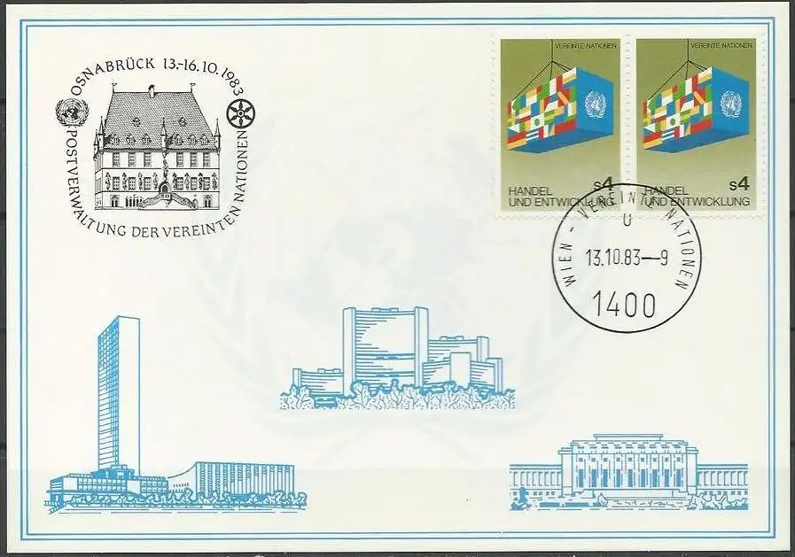 UNO WIEN 1983 Mi-Nr. 33 WEISSE KARTE - OSNABRÜCK 13.10.1983