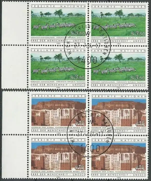 UNO WIEN 1984 Mi-Nr. 41/42 Viererblocks o used - aus Abo