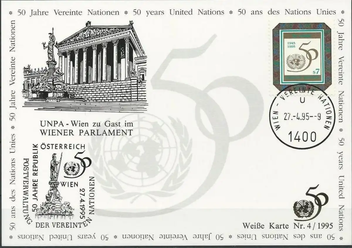 UNO WIEN 1995 Mi-Nr. 154 WEISSE KARTE - WIEN 27.04.1995
