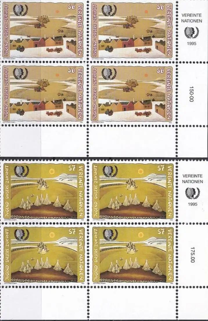 UNO WIEN 1995 Mi-Nr. 184/85 Eckrand-Viererblocks ** MNH