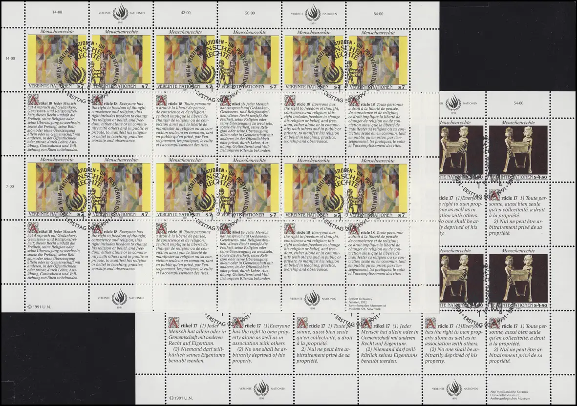 UNO Wien 123-124 Erklärung der Menschenrechte III 1991, ZD-Bogensatz ESSt