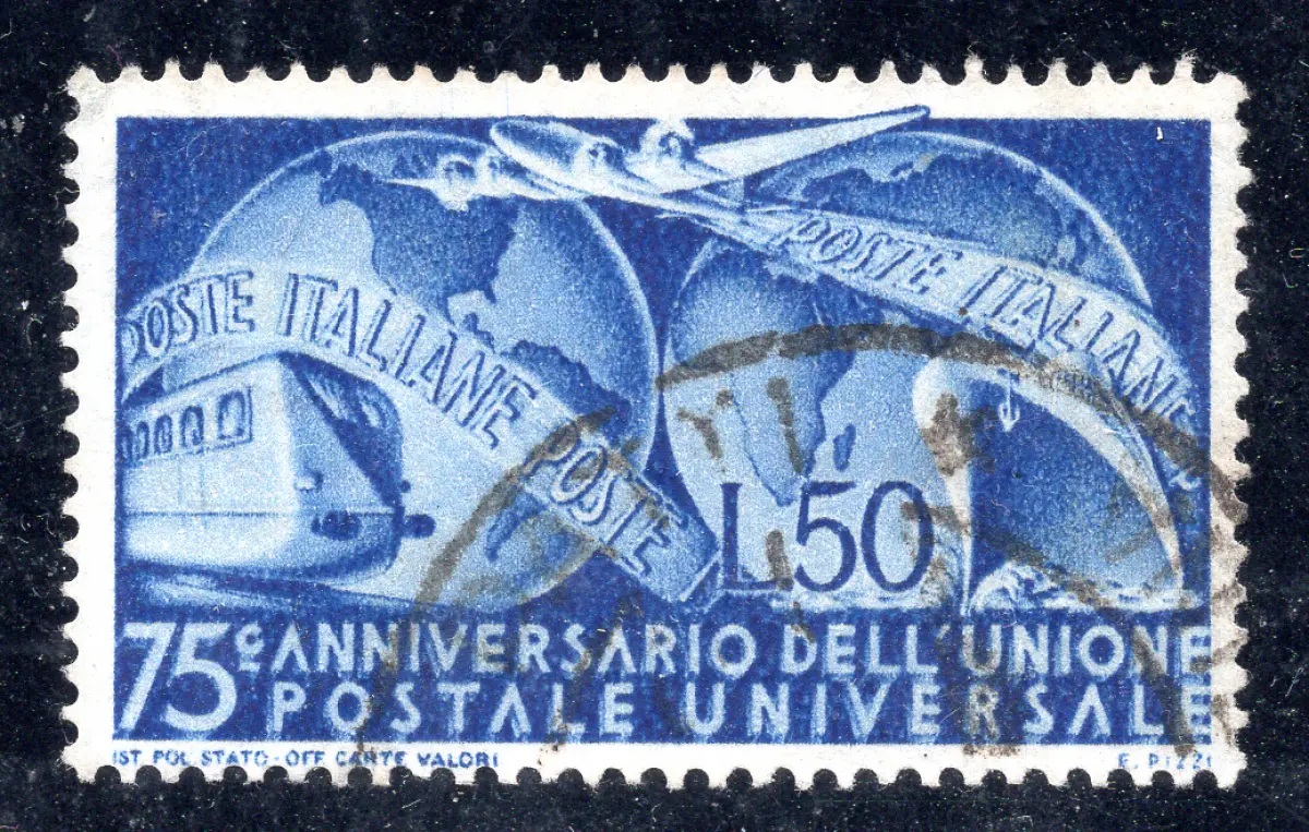 UPU Lire 50 n. 599a defekte Exponentensorte 75c gebraucht gebraucht - UPU Lire 50 Nr. 599a defekte Exponentensorte 75c - sehr gute Qualität und Zentrierung - Kat. euro 125 Code 439/8