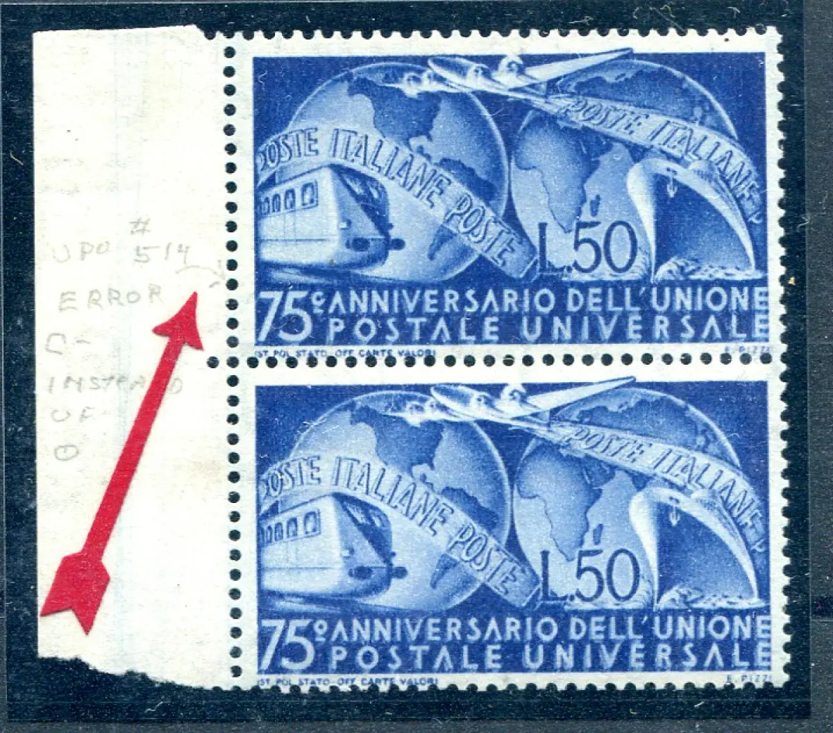 U.P.U. Paar mit Übertragungsvarianten Vollgummi (MNH) - U.P.U. Nr. 599 Paar b. von f., davon ein Exemplar mit Übertragungsvarianten 75c statt 75. - Euro Kat, Euro 320 Code Nr. 647/2