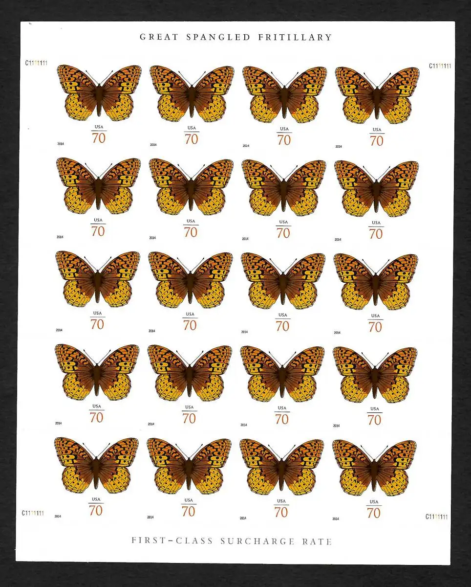 USA: 2014 First class surcharge Rate sheet, Butterfly, Great Spangled Fritillary