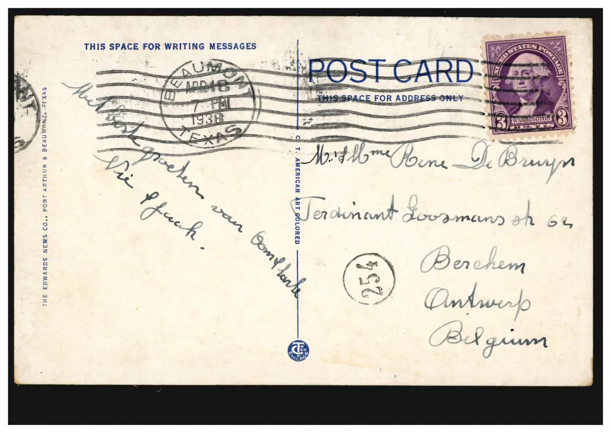 USA-AK Reisernte in der Nähe von BEAUMONT TEXAS 18.4.1938 nach Belgien