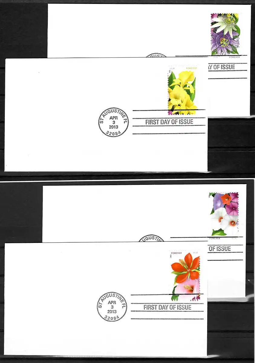 USA: Blumen, Flowers, St. Augustine, FL, 4x FDC, Farbstempel
