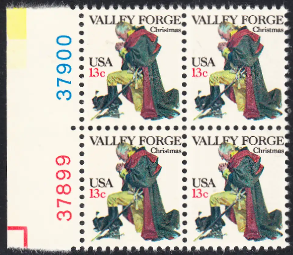 USA Michel 1317 / Scott 1729 postfrisch BLOCK RÄNDER links m/ Platten-# (a2) - Weihnachten: General George Washington beim Gebet in Valley Forge