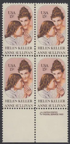 USA Michel 1431 / Scott 1824 postfrisch BLOCK RÄNDER unten m/ copyright symbol - Anne Sullivan, Blindenlehrerin und ihre Schülerin Helen Keller