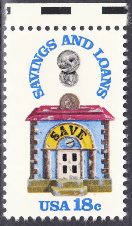 USA Michel 1469 / Scott 1911 postfrisch EINZELMARKE RAND oben (a3) - 150 Jahre Sparkassen; Alte Sparbüchse