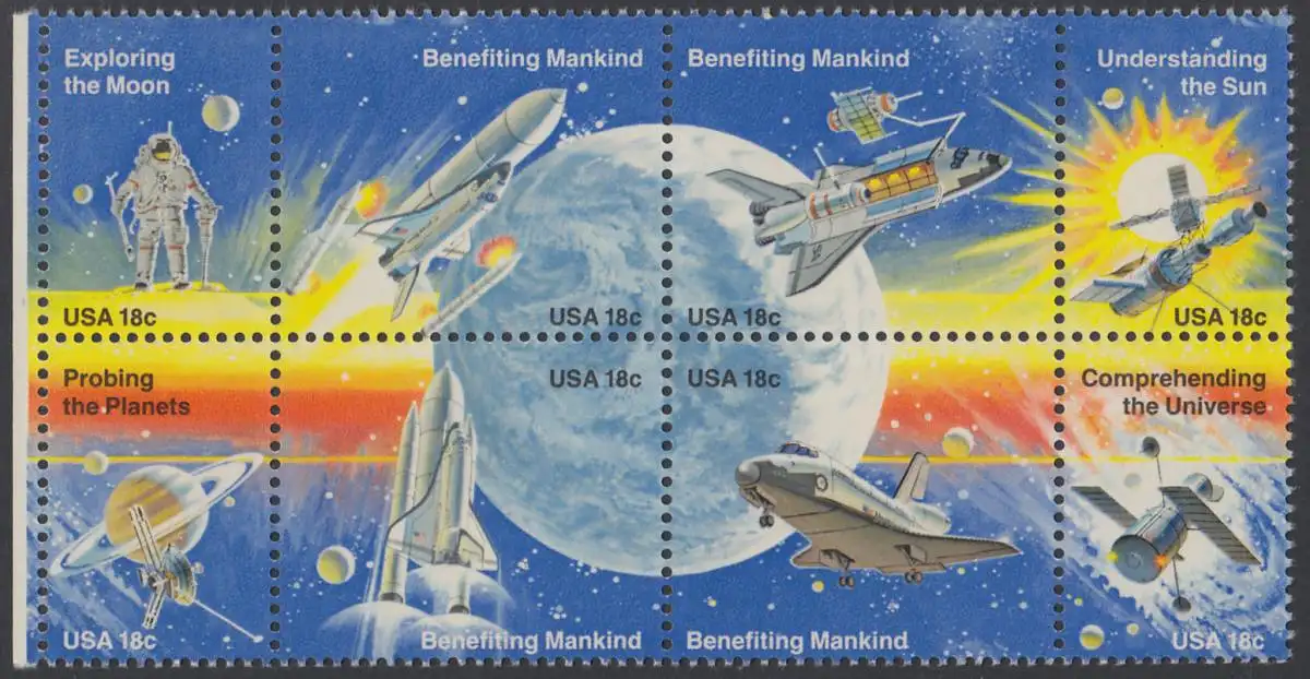 USA Michel 1481-1488 / Scott 1912-1919 postfrisch (Gummi beeintr.) BLOCK RÄNDER links - Erfolge der Raumfahrt