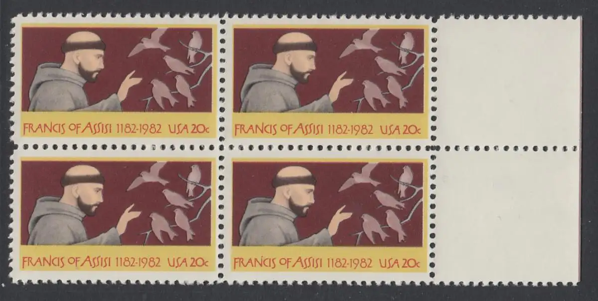 USA Michel 1604 / Scott 2023 postfrisch BLOCK RÄNDER rechts (a3) - 800. Geburtstag des hl. Franz von Assisi