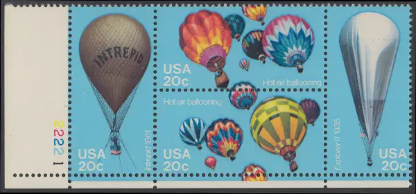 USA Michel 1617-1620 / Scott 2032-2035 postfrisch PLATEBLOCK ECKRAND unten links m/ Platten-# 22221 - Luftfahrt: Start zu einer Ballonwettfahrt