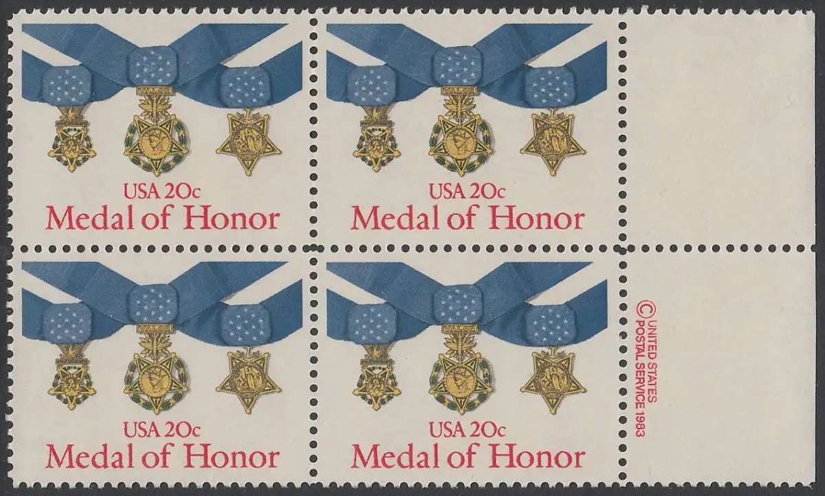 USA Michel 1633 / Scott 2045 postfrisch (Gumm.beeintr.) BLOCK RÄNDER rechts m/ copyright symbol (a2) - Verdienstmedaillen des Heeres, der Marine und der Luftwaffe