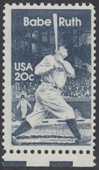 USA Michel 1641 / Scott 2046 postfrisch EINZELMARKE RAND unten (a1) - George Herman -Babe- Ruth (1895-1948), Baseballspieler