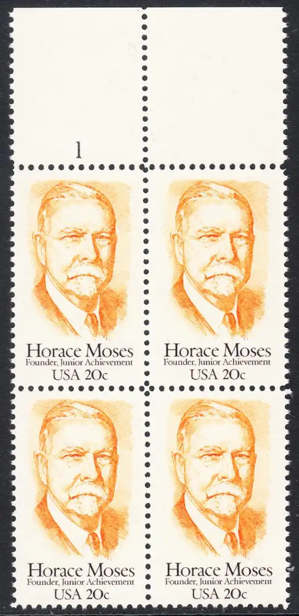 USA Michel 1704 / Scott 2095 postfrisch BLOCK RÄNDER oben m/ Platten-# 1 (a2) - Horace A. Moses, Industrieller und Philanthrop