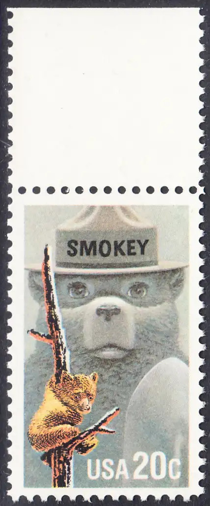 USA Michel 1705 / Scott 2096 postfrisch EINZELMARKE RAND oben (a2) - Waldbrandverhütung: Smokey Bear, Maskottchen der Kampagne zur Waldbrandverhütung