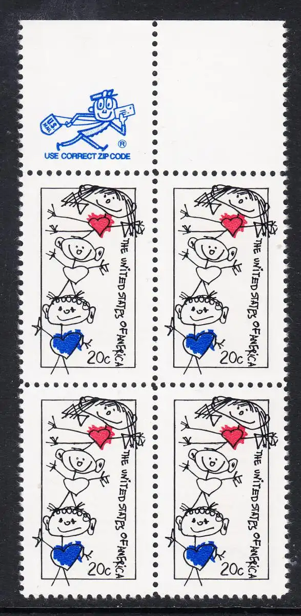 USA Michel 1713 / Scott 2104 postfrisch BLOCK RÄNDER oben m/ ZIP-Emblem (a1) - Einheit der Familie