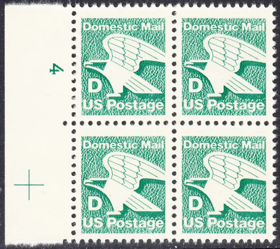 USA Michel 1722A / Scott 2111 postfrisch BLOCK RÄNDER links m/ Platten-# 4 - Adler: Emblem der US-Post