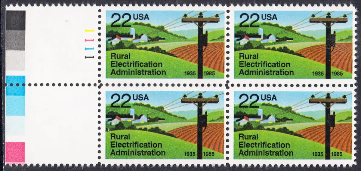 USA Michel 1752 / Scott 2144 postfrisch BLOCK RÄNDER links m/ Platten-# 1111 (a2) - 50 Jahre Amt für die Elektrifizierung der ländlichen Gebiete