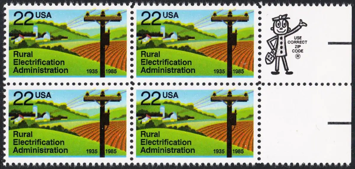 USA Michel 1752 / Scott 2144 postfrisch BLOCK RÄNDER rechts m/ ZIP-emblem - 50 Jahre Amt für die Elektrifizierung der ländlichen Gebiete