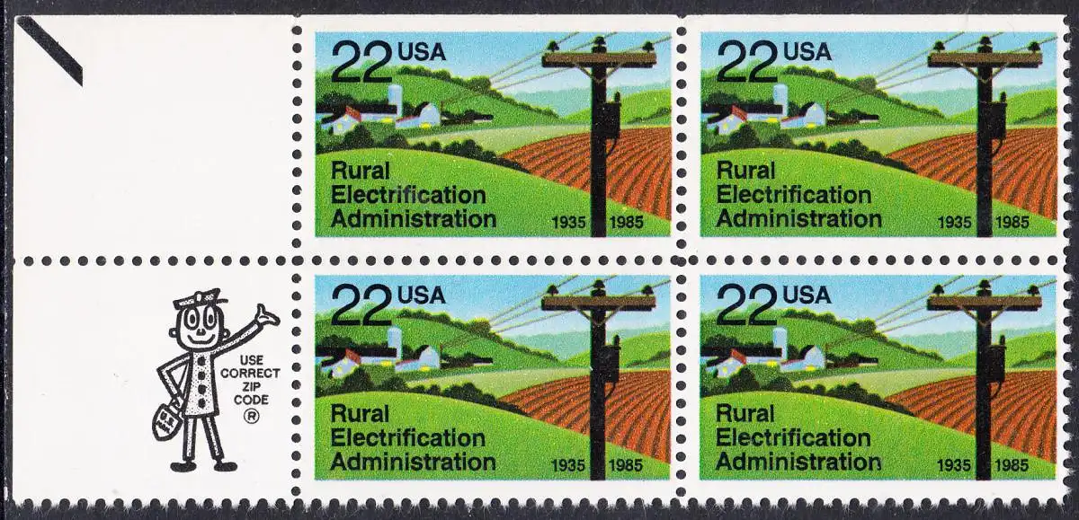 USA Michel 1752 / Scott 2144 postfrisch ZIP-BLOCK ECKRAND oben links (a2) - 50 Jahre Amt für die Elektrifizierung der ländlichen Gebiete