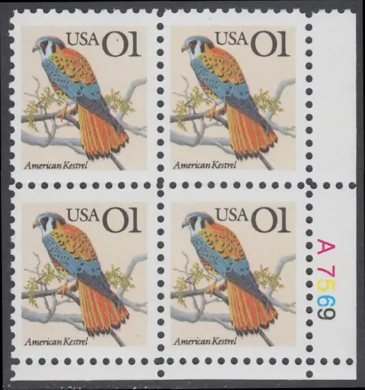 USA Michel 2149 / Scott 2476 postfrisch PLATEBLOCK ECKRAND unten rechts m/ Platten-# A7569 - Tiere: Buntfalke