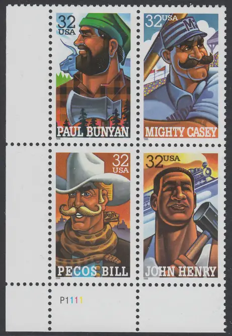 USA Michel 2746-2749 / Scott 3083-3086 postfrisch PLATEBLOCK ECKRAND unten links m/ Platten-# P1111 (b) - Volkstümliche Heldenfiguren