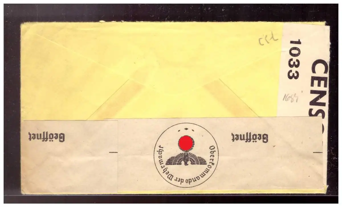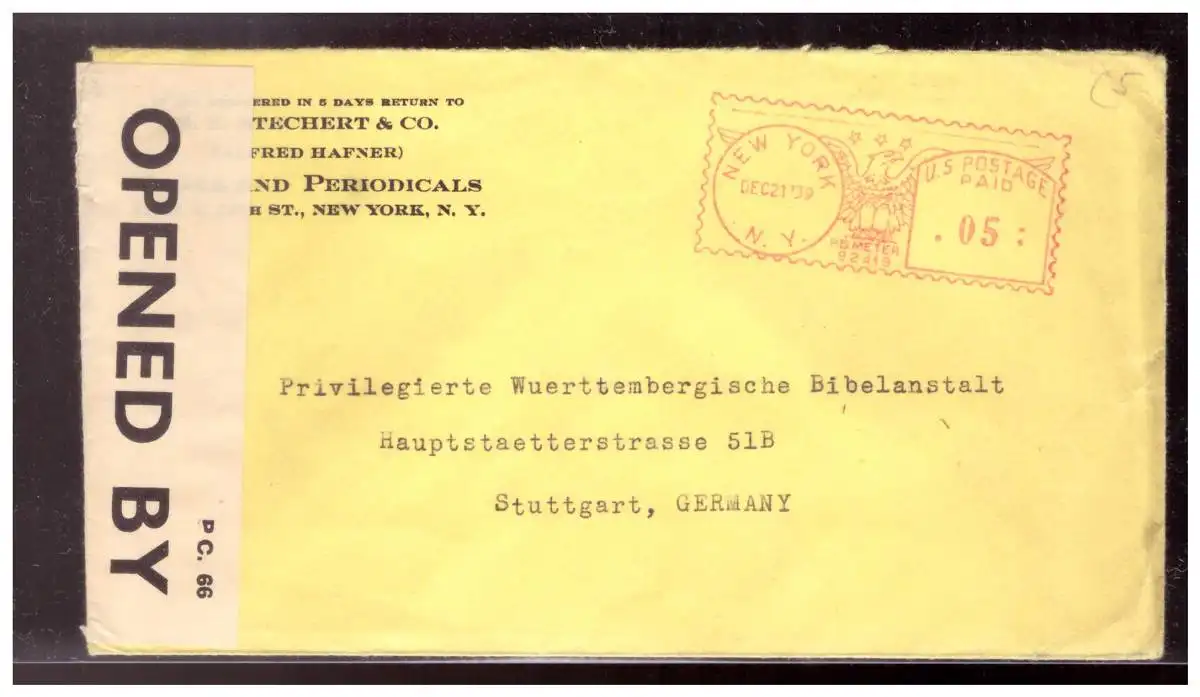 USA (022522) Firmenbrief mit Freistempeler und 2 fach Zensur OKW und USA gelaufen von New York