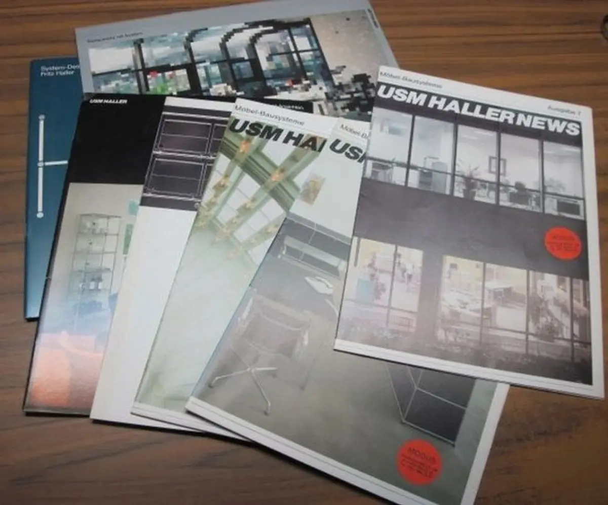 Titel: Konvolut mit 7 Teilen: USM Haller News, Möbel-Bausysteme, Ausgaben 7, 8 und 9 / Möbelkunde mit System / Privat-Ansichten / Transparenz mit System / System-Design Fritz Haller. Bauten, Möbel, Forschung (dies ist ein Sonderdruck aus dem gleichnamigen Buch von Hans Wichmann)