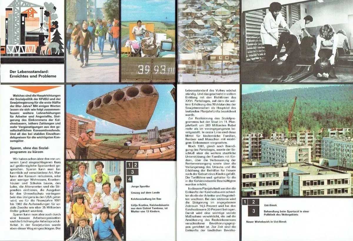 sehr guter Zustand, geringe Gebrauchs- und Alterungsspuren: Umschlag teils geringfügig verschmutzt - Umschlag und Seiten teils etwas eselsohrig, in deutscher Sprache - Die Strategie des intensiven Wirtschaftswachstums - Der Lebensstandard: Erreichtes und Probleme - Auf der Grundlage der Gleichberechtigung und der Wahrung der Interessen aller - Frieden und nur Frieden brauchen die sowjetischen Menschen - Ziffern und Fakten, Softcover, ca. 19 x 26, 36 Seiten mit zahlreichen Bildern