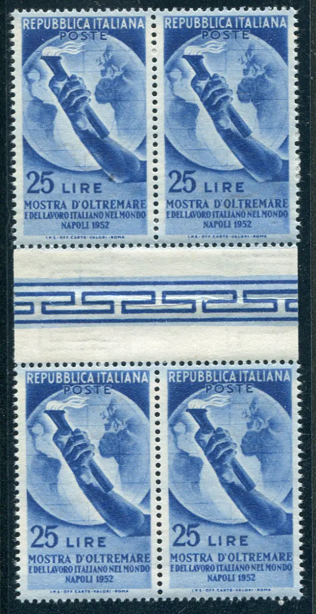 Überseeausstellung Viererblock getrennt in der Mitte durch Zwischenraum Vollgummi - MHN - - - Überseeausstellung Nr. 691 im Viererblock getrennt in der Mitte durch Gruppenzwischenraum - Kat. euro 40 Cod. 345/14
