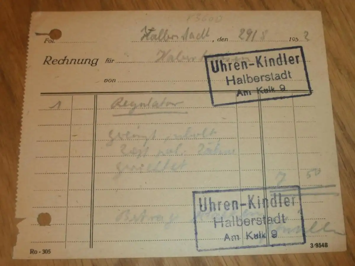Uhren-Kindler in Halberstadt , 1932 , alte Rechnung , Reklame / Werbung !!AZ-WR/1M