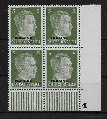Ukraine: Viererblock, postfrisch, ** Eckrand, Platten Nr. 4