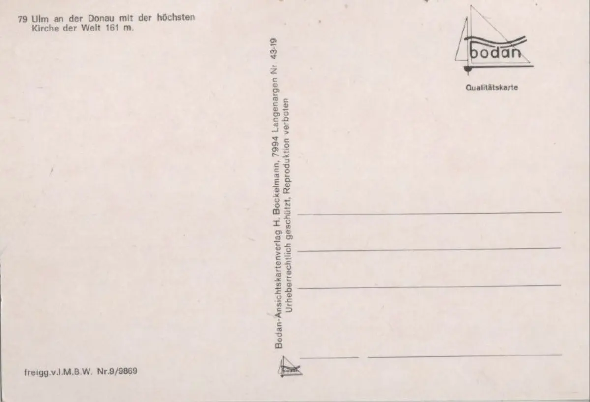 Postleitzahl:89073 (neu) / W 7900 (alt)