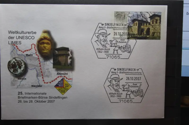 Umschlag mit Sonderwertstempel; USo 141; 25. Intern. Briefmarken-Börse Sindelfingen 2007