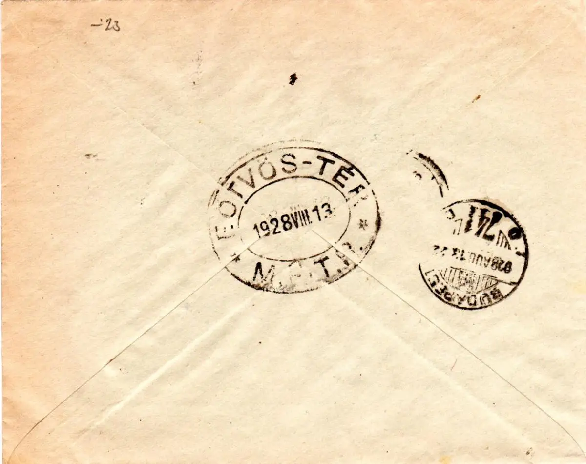 Ungarn 1928, 3+2x10 F. auf Orts-Einschreiben Brief v. Budapest