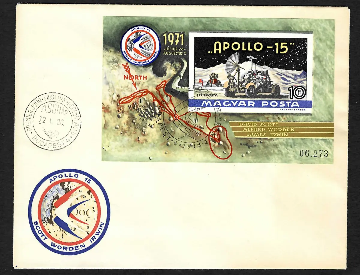 Ungarn: Apollo 15, Mondlandung, 1969, Block 87B, FDC