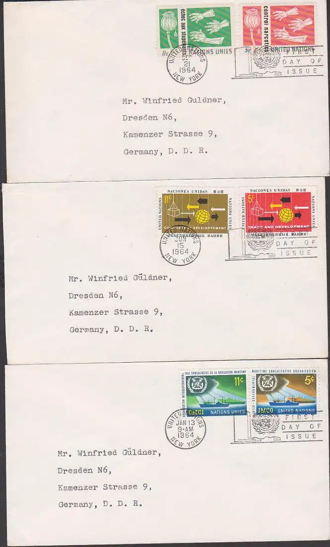 United Nations international paece and serurity, Lot first day issue, control narcotics, cessation of nuclear testing